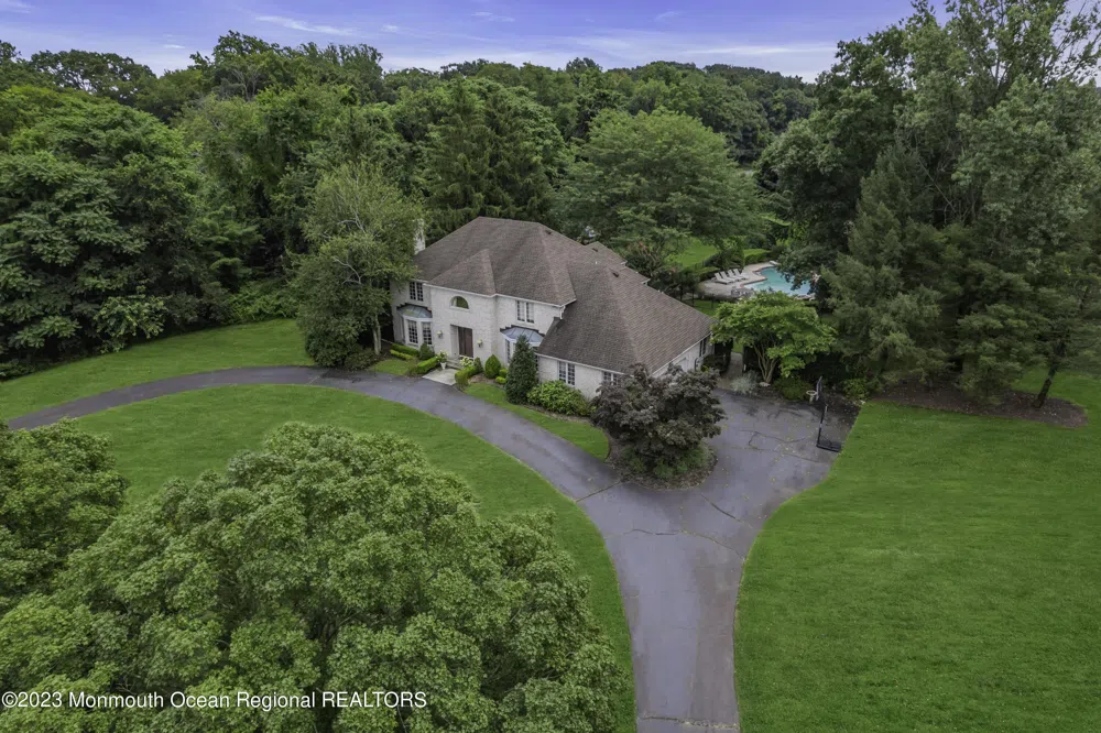 Welcome to the epitome of luxury living in the prestigious Orchard Estates development nestled within the serene enclave of Colts Neck. This home includes a 12 month home warranty. This magnificent 4-bedroom, 5-bathroom home exudes elegance and charm at every turn, offering a harmonious blend of sophisticated design and modern comfort. As you approach the residence, a grand circular driveway greets you, setting the tone for the lavish experience that awaits. The journey begins with the gracious entryway, where winding steps lead you into a breathtaking two-story foyer flooded with natural light. Gleaming hardwood floors seamlessly guide you through the main level, complemented by recessed lighting and exquisite decorative molding that elevates the ambiance of each room. The main level effortlessly balances formality and functionality, boasting both a refined formal living room and an elegant dining room designed for hosting gatherings of any scale. The heart of the home resides in the gourmet kitchen, equipped with top-of-the-line stainless steel appliances, double wall oven, and a convenient island that invites culinary creativity. A warm and inviting family room and a separate living room, each graced by a cozy fireplace, provide cozy spaces for relaxation and connection. For those seeking productivity, a thoughtfully designed first-floor office offers a private sanctuary for work or study. Ascending the staircase to the second floor, you'll find generously proportioned bedrooms that offer both comfort and space for personal retreat. The master suite stands as a true oasis, featuring a spacious walk-in closet, a tranquil sitting area, and a spa-like master bathroom that promises moments of relaxation and rejuvenation. The pleasures continue within the lower level of the home, where a full finished basement awaits your desires. Stay active in the well-appointed gym, or indulge in cinematic experiences within an area that you can easily make a movie theatre, ensuring entertainment options for every taste. Stepping outside, the meticulously landscaped exterior invites you to a private, park-like haven. An inground concrete pool takes center stage, providing refreshing escapes on hot summer days. The expansive patio with an outdoor kitchen offers the perfect backdrop for hosting al fresco gatherings, creating an atmosphere of sheer delight for family and friends. Beyond the bounds of this splendid property, Colts Neck's excellent school system and abundant shopping and dining options ensure a convenient and enjoyable lifestyle. Embrace the opportunity to make this exquisite residence your very own, where luxury and comfort converge in perfect harmony.
